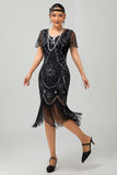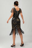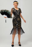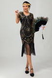 Beaded Black Golden Fringed Bodycon 1920s Dress