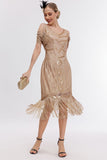 Black Golden Cold Shoulder Fringes 1920s Gatsby Dress