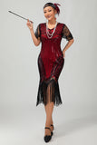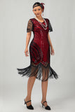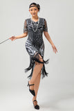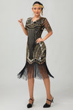 Black Golden Sequin Bodycon 1920s Flapper Dress with Tassles