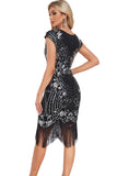 Black Sheath Cap Sleeves Sequins 1920s Flapper Dress with Fringes