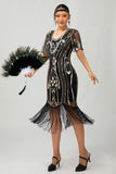 Dark Green Sequin Fringe 1920s Dress with 4-Piece Accessories Set