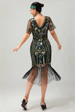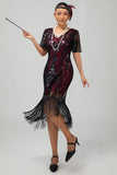 Flapper Burgundy Sequin Bodycon Fringed 1920s Dress