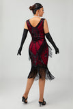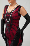 Fringed Black Red Sequin 1920s Dress with 5-Piece Accessory Set