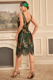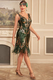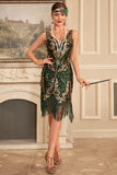 Green Golden Sequins Fringe 1920s Gatsby Dress with Accessories Set
