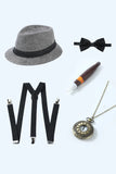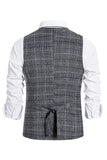 Grey Plaid Double Breasted Men's Vest with Accessories Set