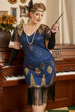 Royal Blue Plus Size 1920s Gatsby Dress with 20s Acessories Set