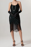 Sparkly Black Sequin Spaghetti Straps Bodycon Short 1920s Dress with Fringes