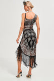 Sparkly Black Sequins Fringes Asymmetrical 1920s Gatsby Dress with Accessories Set