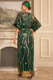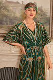 Sparkly Dark Green Flowers Sequins Long 1920s Dress with Accessories Set