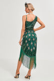 Sparkly Dark Green Sequins Fringes Asymmetrical 1920s Gatsby Dress with Accessories Set