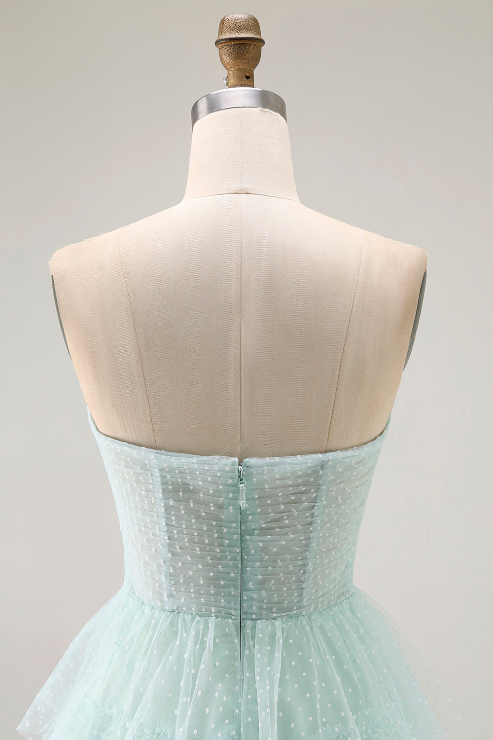 Light Green Strapless A Line Polka Dots Tiered Ruffle Bridesmaid Dress with Slit
