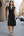 A Line Black Printed One Shoulder Long Work Dress with Pockets