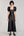 A Line Black Satin V-Neck Long Work Dress with Sash