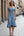 A Line Grey Blue Off the Shoulder Ruched Midi Work Dress with Ruffles