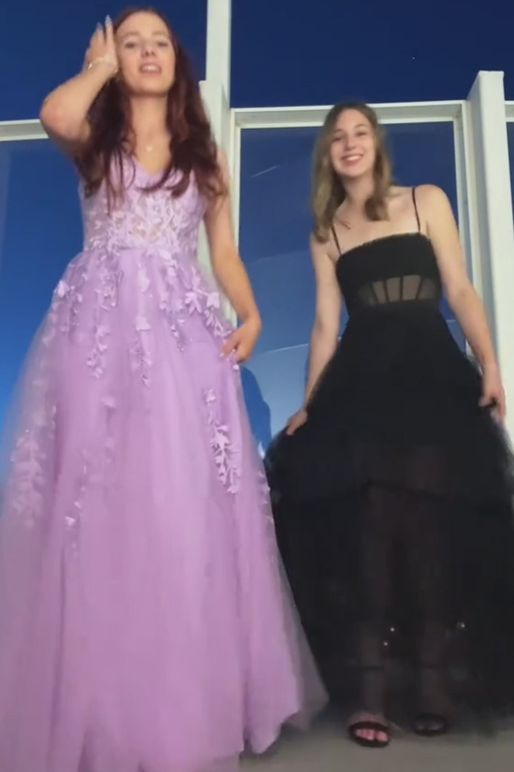 A Line Spaghetti Straps Navy Prom Dress with Appliques