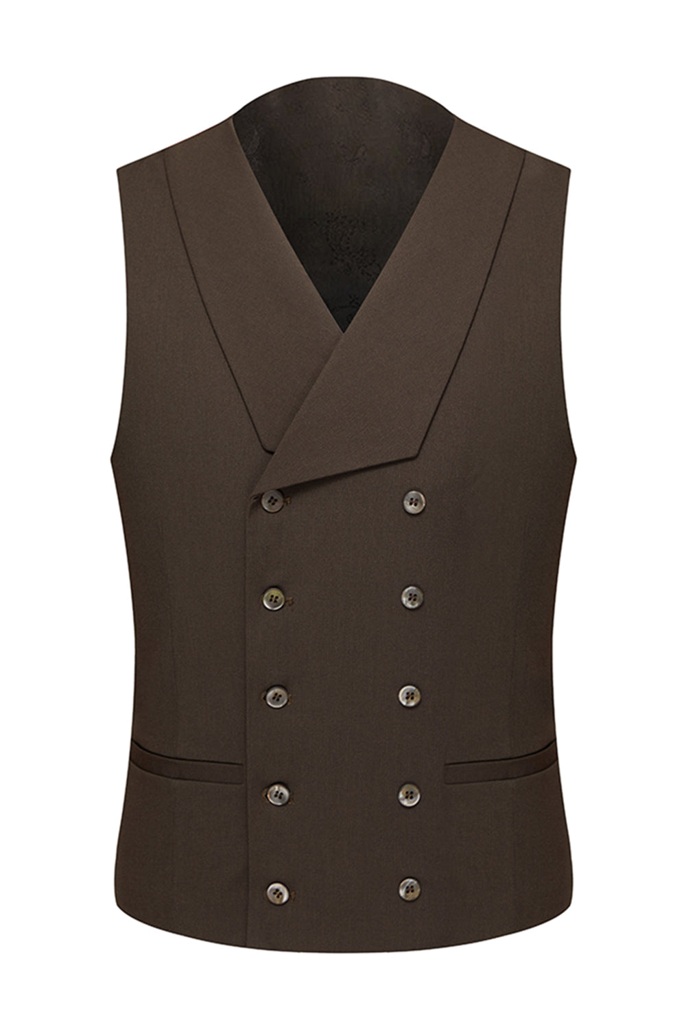 Khaki Coffee Peak Lapel Single Breasted Men's 3 Piece Suits