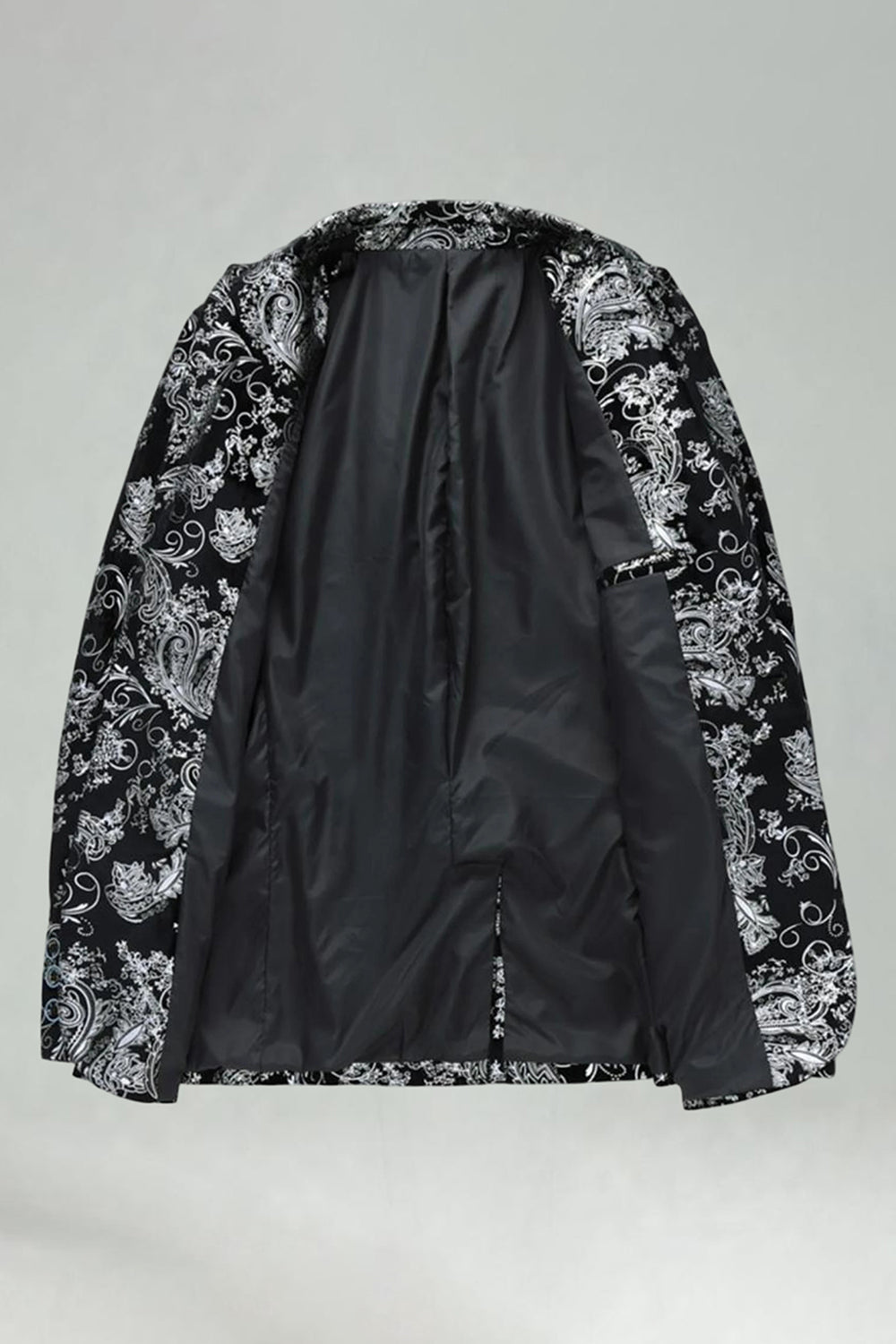 Notched Lapel Silver Jacquard Men's Prom Blazer