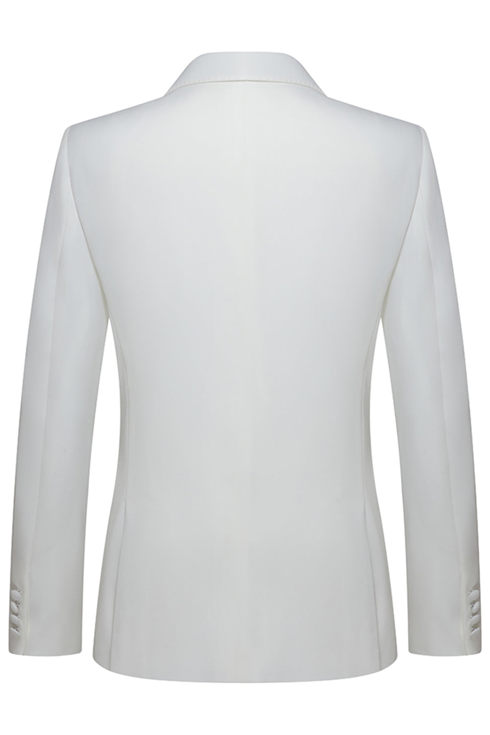 Peak Lapel 3 Piece One Button White Men's Wedding Suits