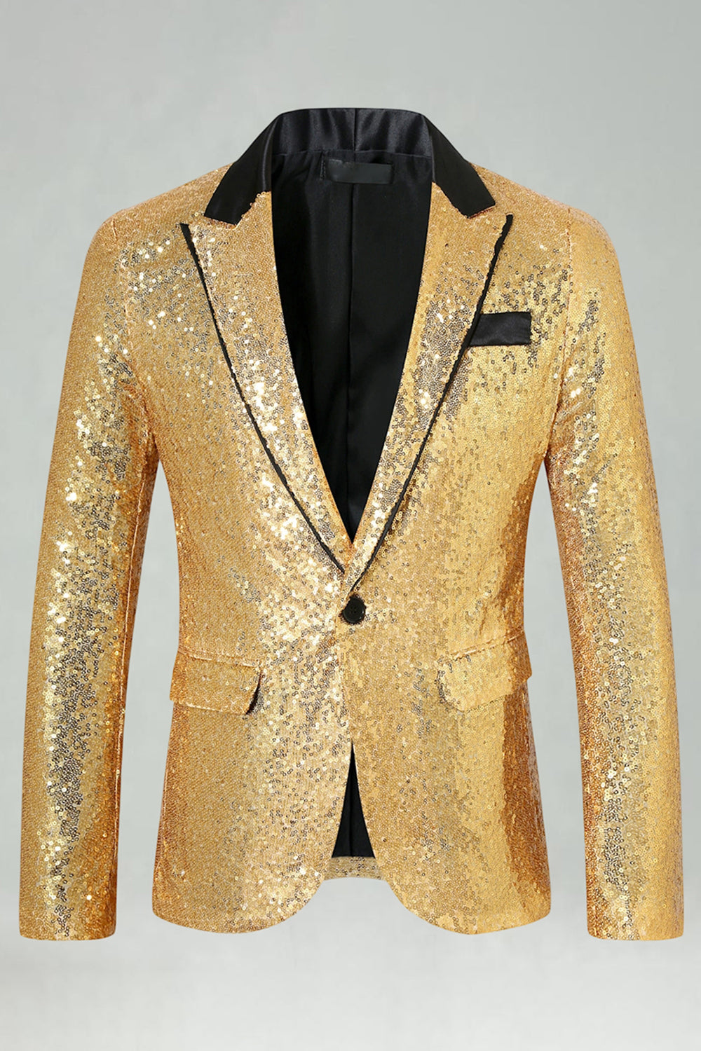 Sparkly Gold Peak Lapel Men's Prom Blazer