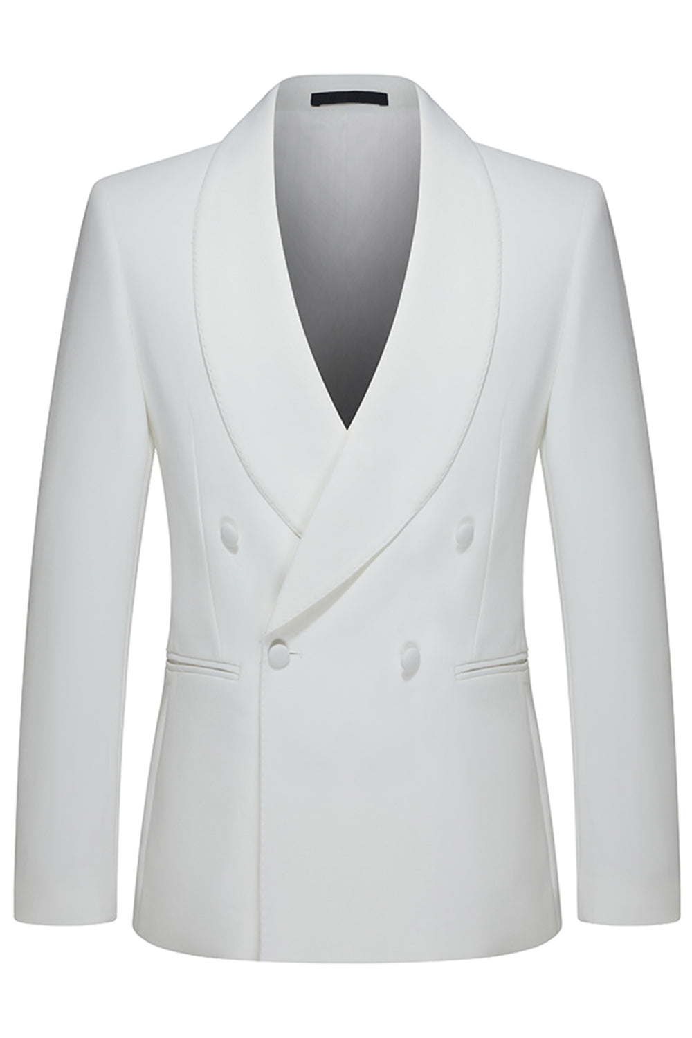 White 2 Piece Men's Shawl Lapel Double Breasted Wedding Suits