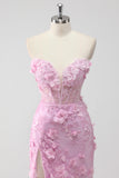 Lilac Strapless Coset Applique Mermaid Long Prom Dress with Slit