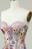 Strapless A Line Prom Dress with 3D Flowers