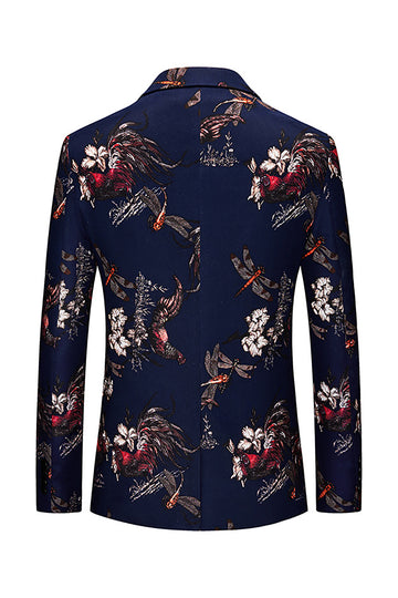 Red Floral Notched Lapel Slim Fit Men's Blazer