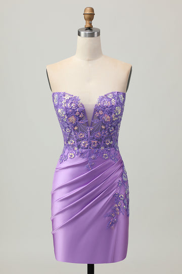 Sparkly Purple Bodycon Strapless Corset Ruched Sequins Short Homecoming Dress