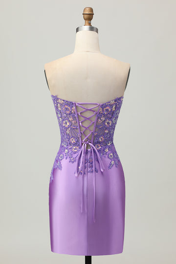 Sparkly Lilac Floral Bodycon Corset Homecoming Dress