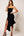 Cowl Neck Black A Line Midi Wedding Guest Dress