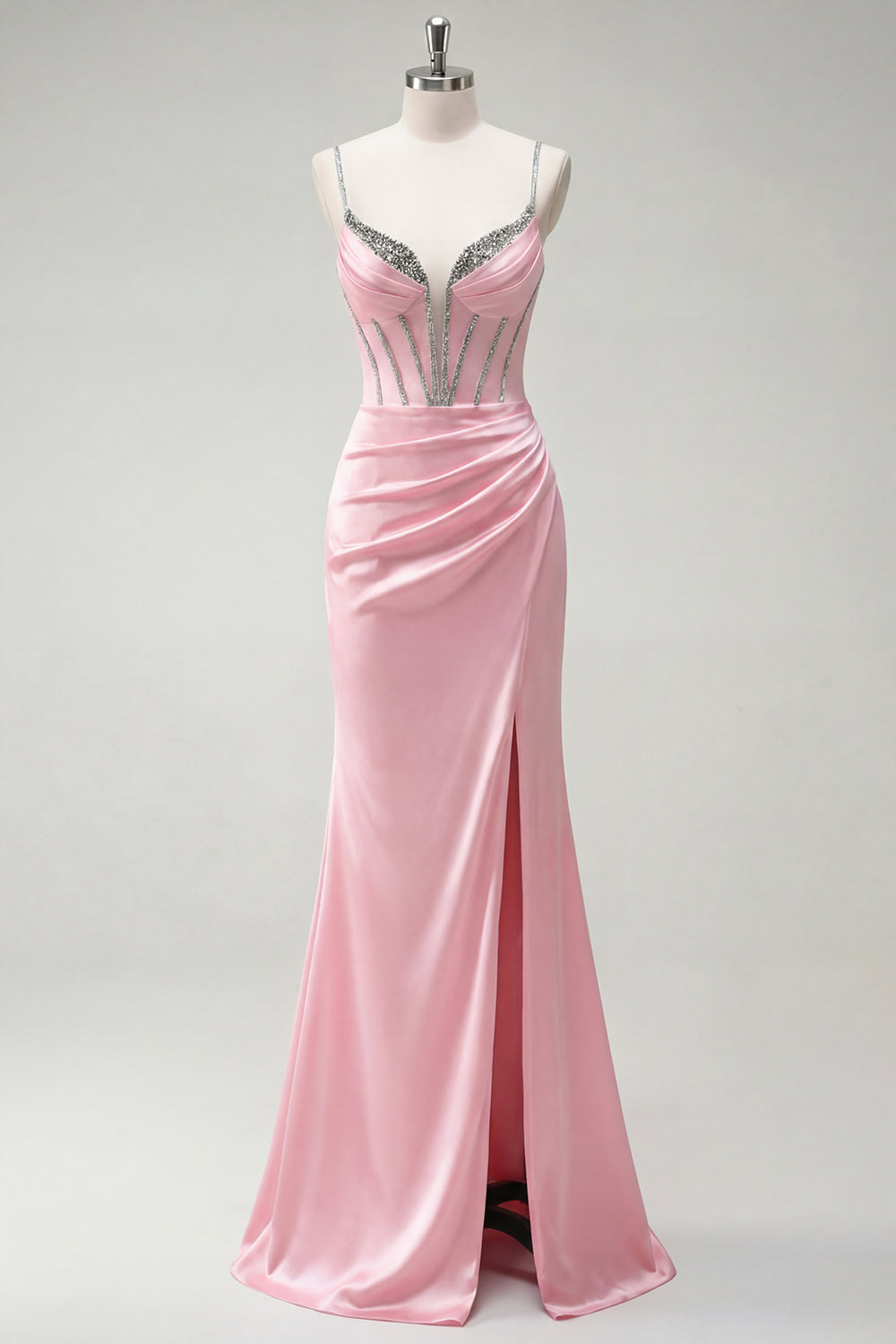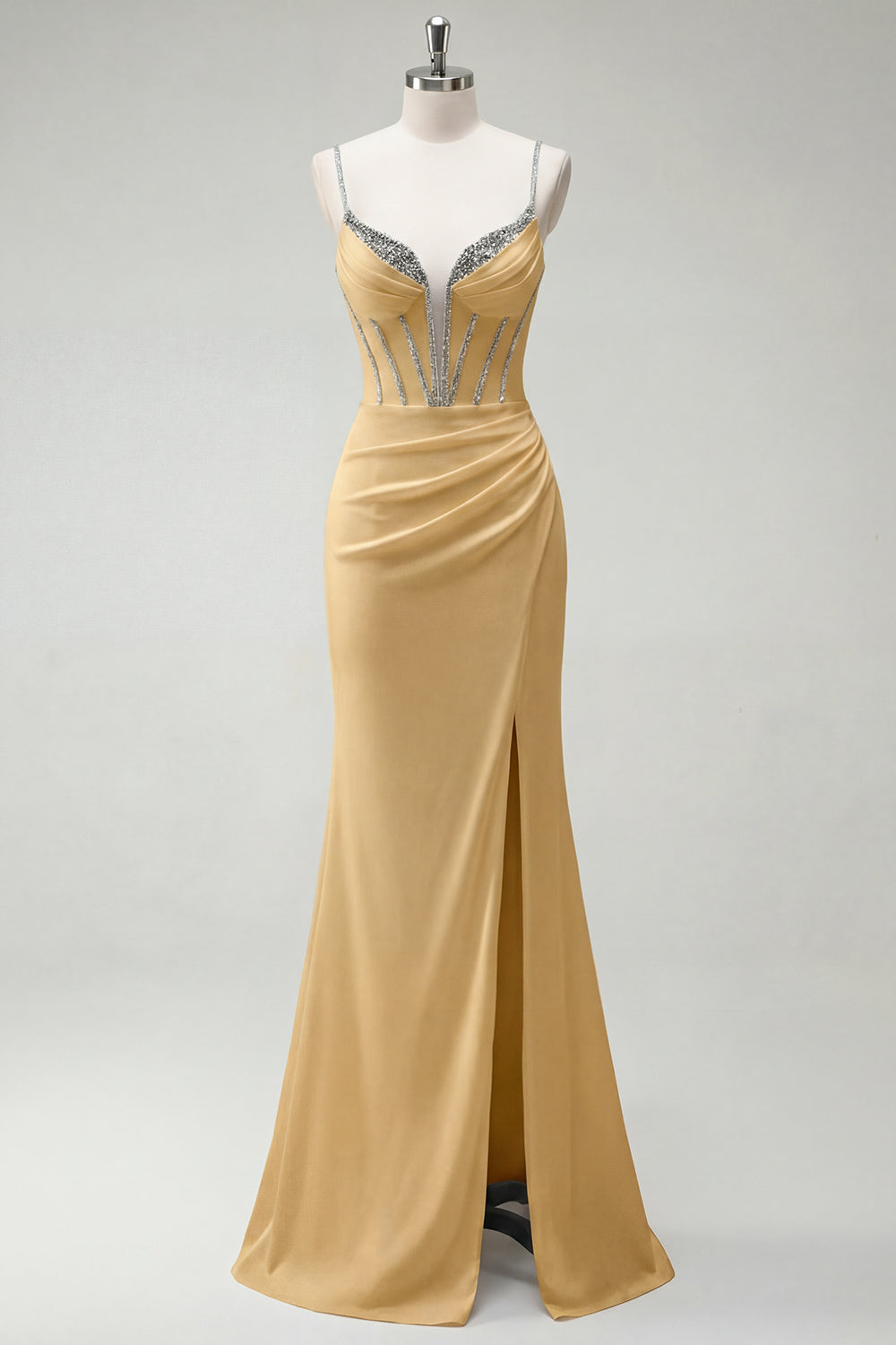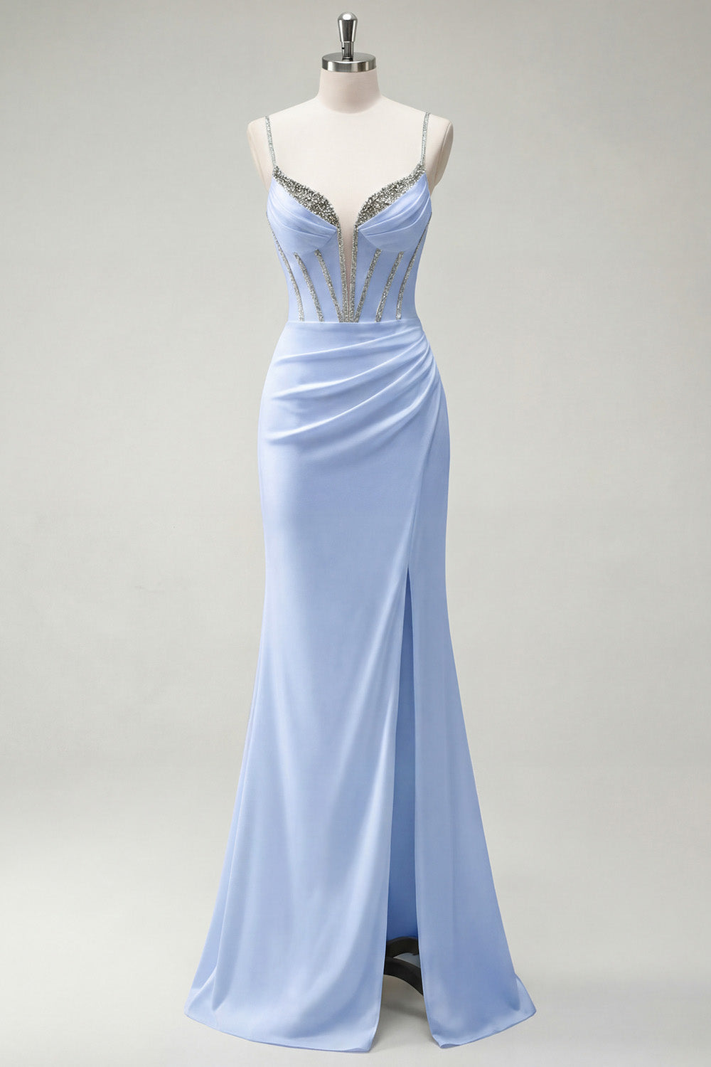 Black Mermaid Spaghetti Straps Corset Long Prom Dress With Slit