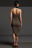 Coffee Bodycon Satin Midi Formal Dress with Slit