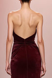 Dark Red Mermaid Velvet Ruched Strapless Long Evening Dress