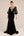 Terracotta Satin V-Neck Floral Long Black Tie Dress with Sleeves