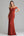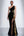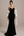 Terracotta Ruffled Satin Cold Shoulder Long Black Tie Dress with Slit
