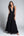 A Line Spaghetti Straps Black Tie Dress with Slit