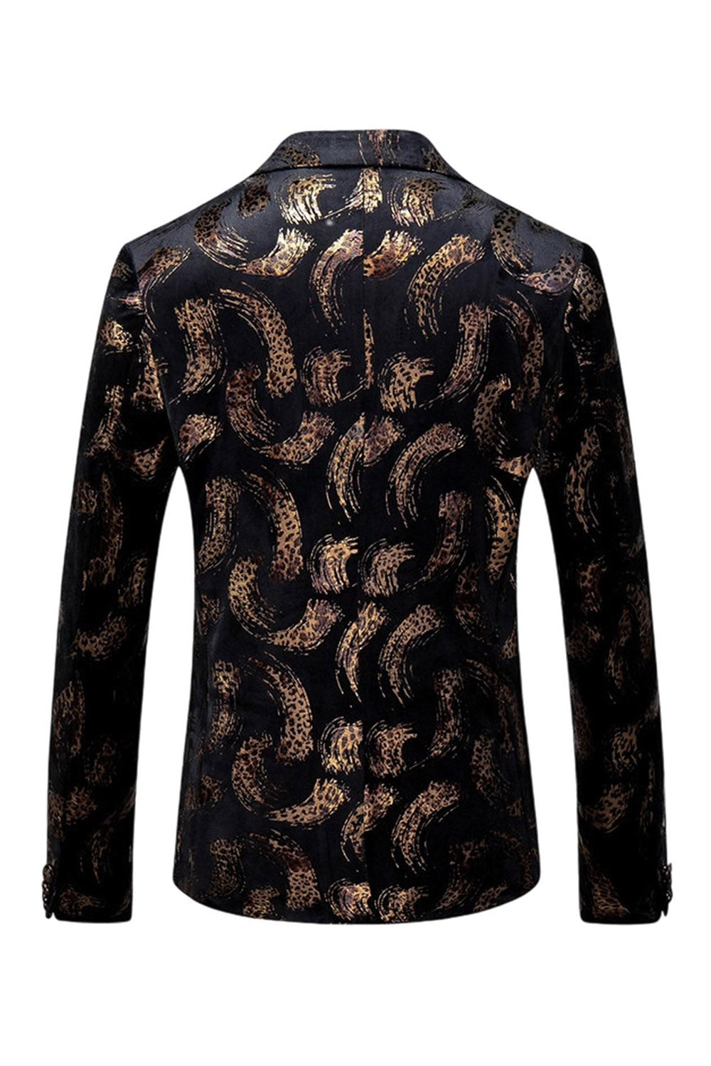 Men's Black Golden Printed Notched Lapel Prom Blazer