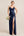Blue A Line Cowl Neck Floral Jacquard Long Bridesmaid Dress with Slit