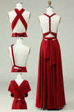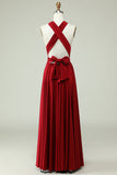 A-Line Halter Burgundy Long Bridesmaid Dress
