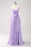 Grey Green Sheath Floral Print Long Chiffon Bridesmaid Dress With Slit