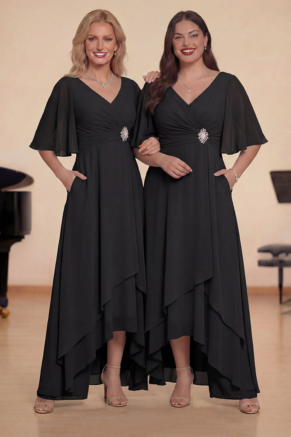 Black A-Line Half Sleeves Ruched Long Choir Dress with Pockets