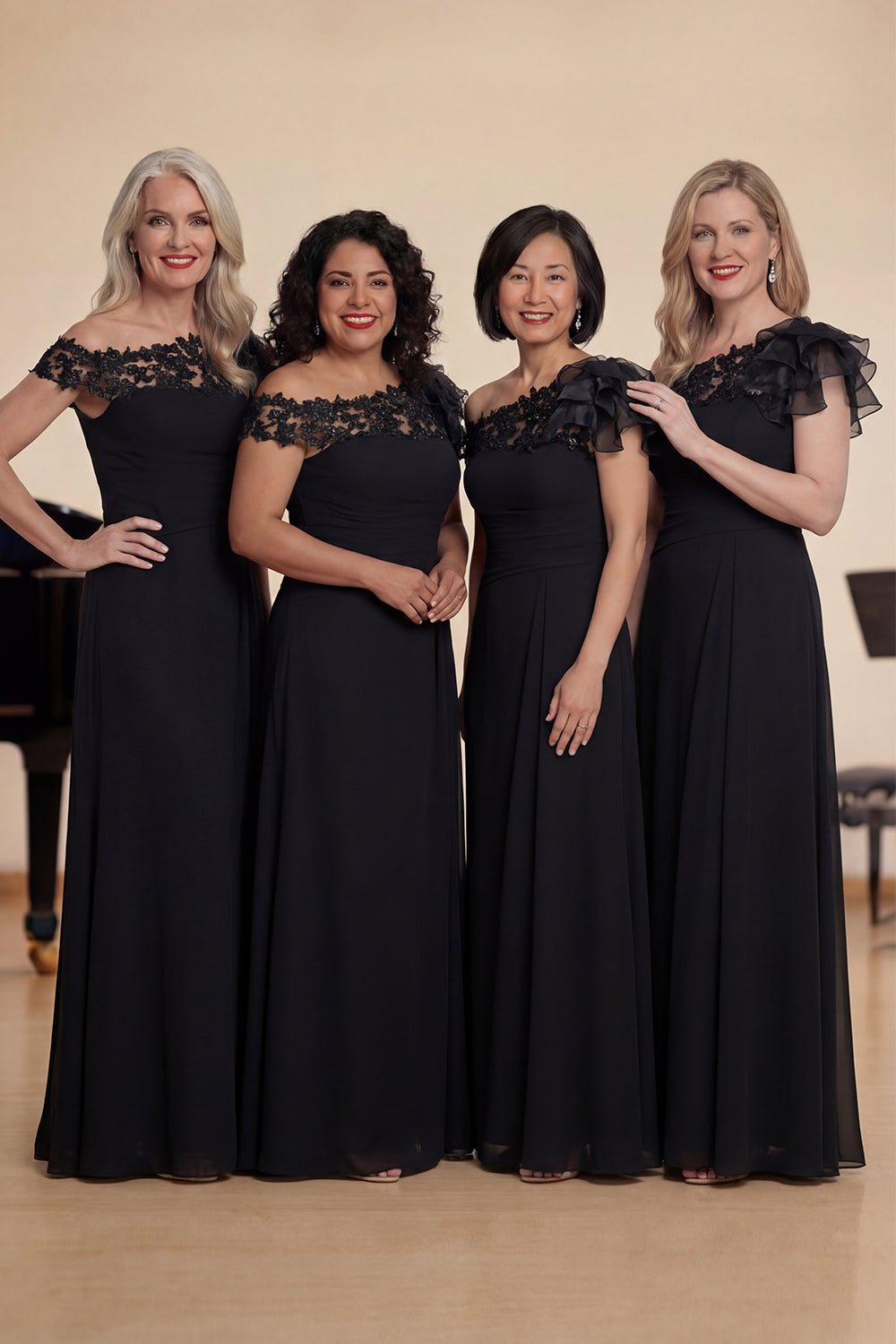 Black A Line One Shoulder Long Choir Dress with Lace Appliques