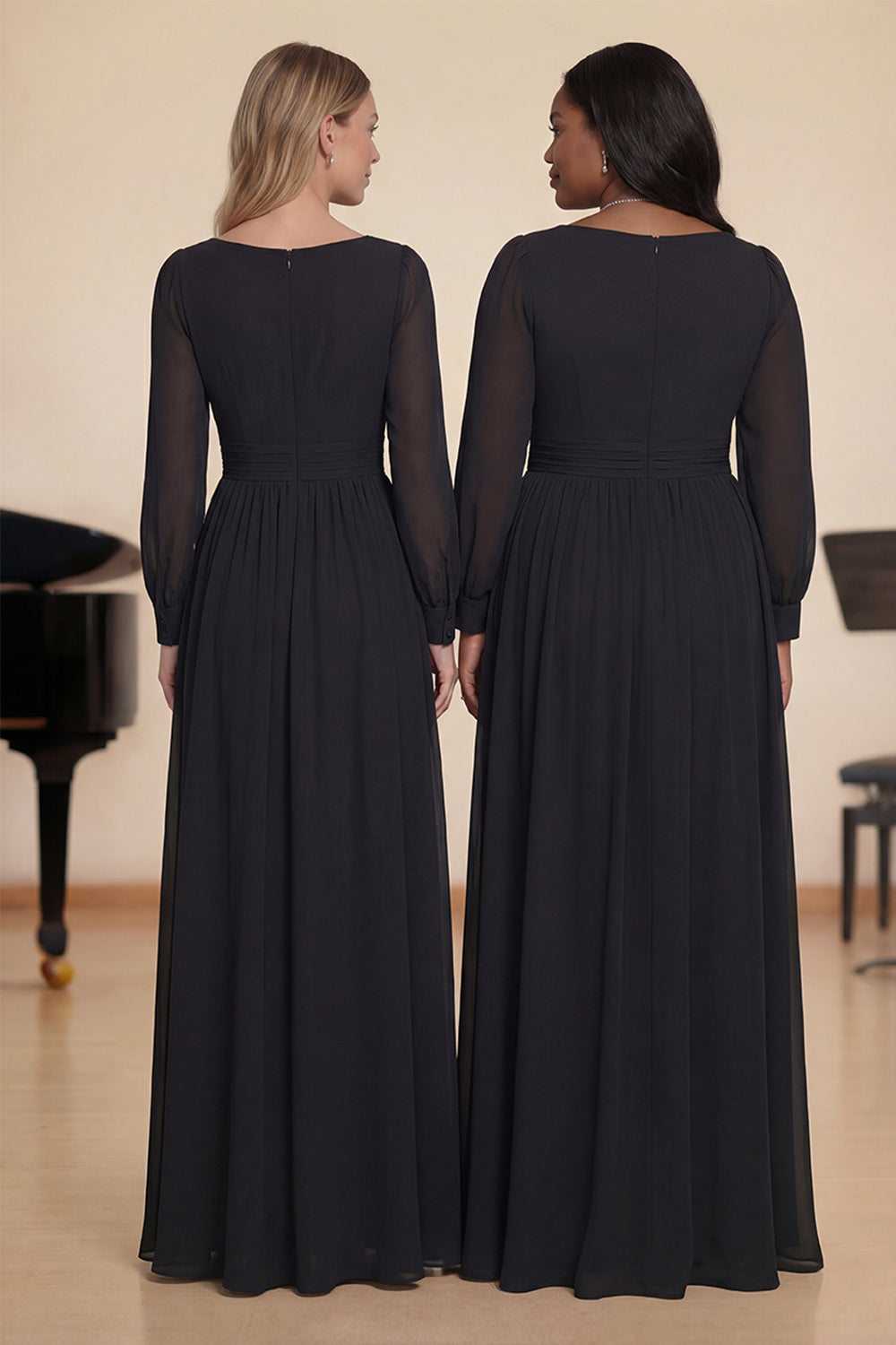 Black Chiffon Long Sleeves A-Line Choir Dress