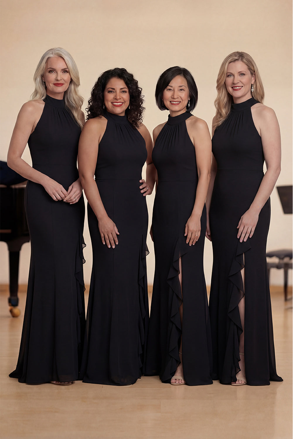 Black Mermaid Halter Long Choir Dress with Ruffled Slit