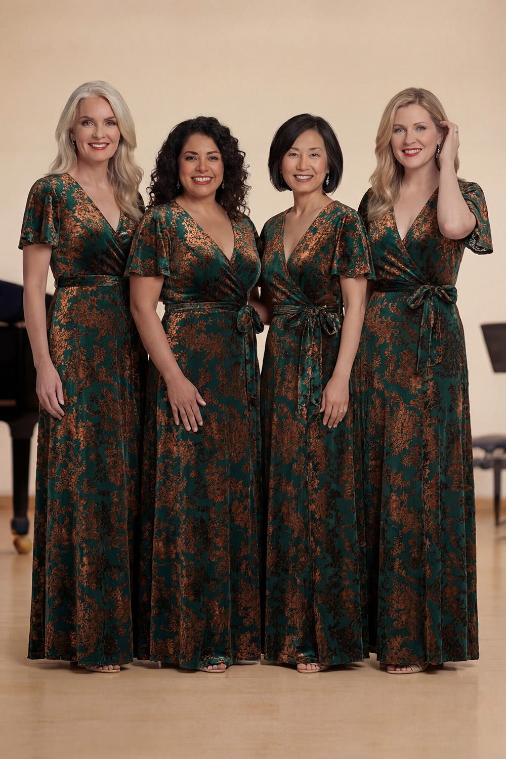 Dark Green A Line Burnout Velvet Long Choir Dress with Short Sleeves