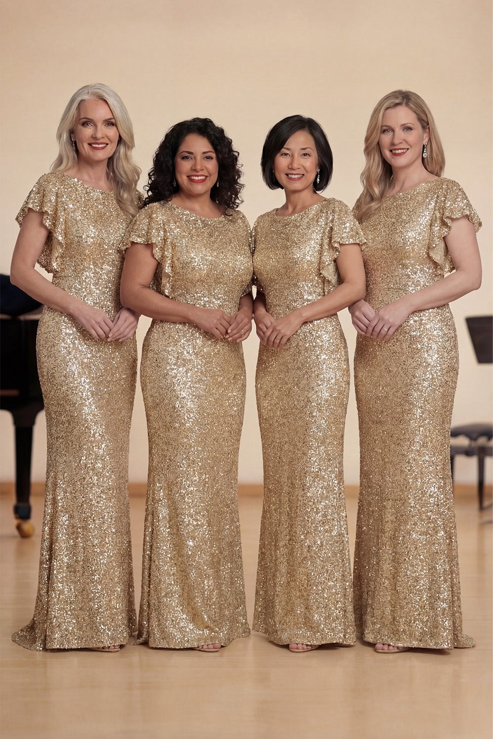 Sparkly Golden Sheath Sequin Long Choir Dress with Flutter Sleeves