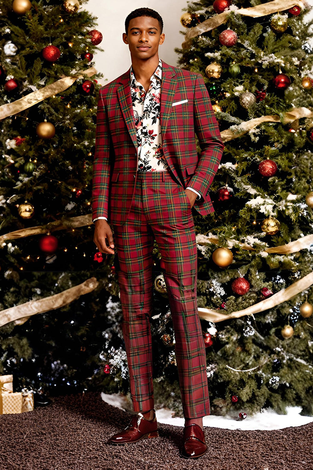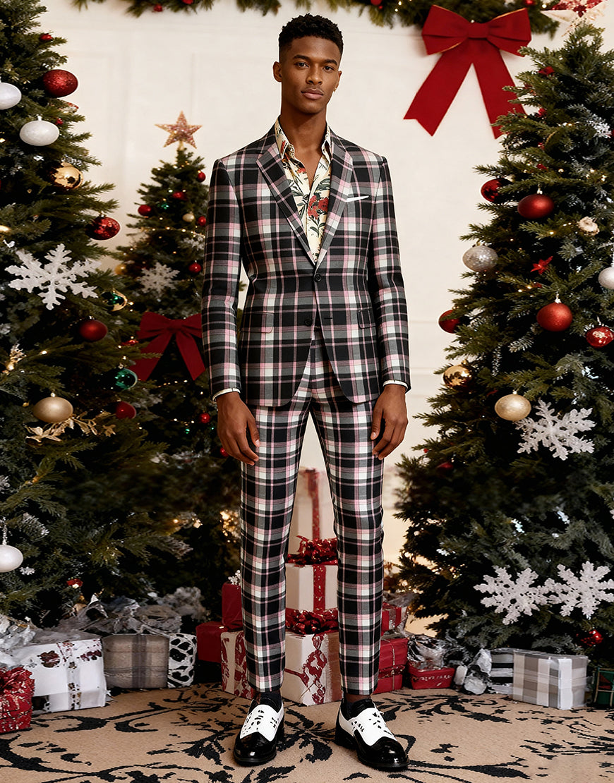 Black Yellow Grid Notched Lapel 2 Piece Men's Prom Suits