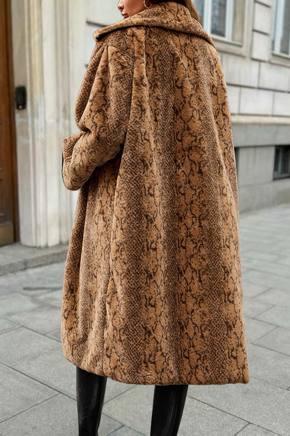 Snake Brown Faux Fur Thickened Shawl Lapel Women Coat