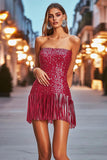 Bodycorn Sequins Fringes Fuchsia Strapless Short Cocktail Dress
