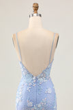 Light Blue Bodycon Floral Sequins Homecoming Dress with Appliques